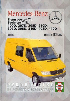 Руководство по ремонту, техническому обслуживанию и эксплуатации фургонов, грузовиков малой грузоподъемности и микроавтобусов Mercedes-Benz 207D-410D, Transporter T1, Sprinter T1N с 1979 г. выпуска, оборудованных дизельными двигателями рабочим объемом 2,3, 2,4, 2,9 л.