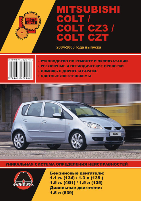 Информационно-справочное иллюстрированное пособие Руководство по ремонту Mitsubishi Colt / Colt CZ3 / Colt CZT, а также устройство этой модели, руководство по эксплуатации и операциям связанным с техническим обслуживанием Mitsubishi Colt / Mitsubishi Colt CZ3 / Mitsubishi Colt CZT. Эти машины выпускались в период с 2002 по 2008 год и оборудовались бензиновыми двигателями 134 рабочим объемом 1,1 л., 135 (1,3 и 1,5 л.), 4G1 (1,5 л.) и дизельными двигателями 639 рабочим объемом 1,5 л. Ремонт узлов и агрегатов. Эксплуатация и ТО. Электрические схемы Мицубиси Кольт
