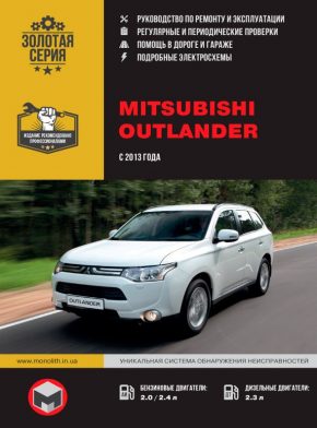 Профессиональное руководство по ремонту Mitsubishi Outlander, а также инструкция по эксплуатации и техническому обслуживанию Мицубиси Аутлендер с 2013 года выпуска, оборудованных бензиновыми двигателями рабочим объемом 2,0, 2,4 и дизельными двигателями объемом 2,3 л. Ремонт узлов и агрегатов. ТО. Эксплуатация. Регулярные и периодические проверки. Помощь в дороге и гараже. Схемы электрических соединений. Система определения неисправностей.