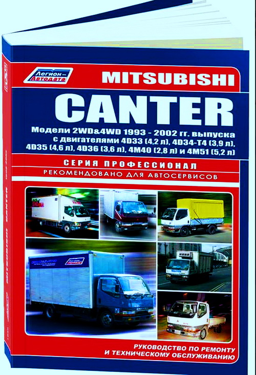 Справочно-информационный иллюстрированный мануал руководство по ремонту Mitsubishi Canter, а также устройство, руководство по техническому обслуживанию и эксплуатации заднеприводных и полноприводных автомобилей Mitsubishi Canter (модели 2WD, 4WD) с 1993 г. выпуска, оборудованных дизельными двигателями 4M40 рабочим объемом 2,8 л., 4D36 рабочим объемом 3,6 л., 4D34-T4 (с турбонадувом) рабочим объемом 3,9 л., 4D33 рабочим объемом 4,2 л., 4D35 рабочим объемом 4,6 л., 4M51 рабочим объемом 5,2 л. Ремонт Мицубиси Кантер. Инструкция по эксплуатации. Схемы электрооборудования.