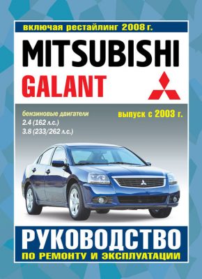 Подробное справочно-информационное издание Книга по ремонту Mitsubishi Galant, а также руководство по техническому обслуживанию и эксплуатации, устройство Mitsubishi Galant с 2003 г. выпуска, а также рестайлинговых моделей с 2008 г. выпуска, оборудованных бензиновыми двигателями рабочим объемом 2,4 (162 л.с.) и 3,8 л. (233 / 262 л.с.). Ремонт Мицубиси Галан. Эксплуатация, ТО, электрические схемы.