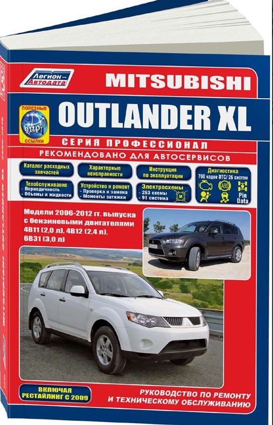 Любое издание технико-ремонтной направленности, и представленная книга популярнейшего московского автоиздательства Легион-Автодата не исключение, имеет одной из основных функций всюду быть первым, кто окажет техподдержку владельцу машины, дать профессиональные, то есть самые выверенные и качественные, а значит самые и эффективные советы о том как будет лучше устранить проявившиеся неполадки. Иными словами задачу руководства Mitsubishi Outlander XL можно обозначить еще проще – везде, куда хозяин бы не отправился, необходимо всегда находиться под рукой. Ведь кроме обязанности доброго подсказчика в условиях гаражной мастерской такая книга, например, сможет при форс-мажорных обстоятельствах вдали от цивилизации оказать неоценимую помощь технику из дорожного сервиса провести ремонтные процедуры быстро и без ошибок, а Вам поможет проконтролировать его работу. Очень многие водители, попадавшие в подобные переделки, теперь, желая перестраховаться, держат такую литературу у себя в бардачке.