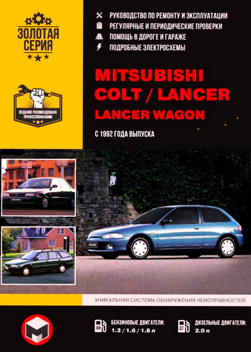 Справочное пособие по ремонту Мицубиси Лансер, Мицубиси Лансер Вагон, Мицубиси Кольт, устройство, эксплуатация и техническое обслуживание Mitsubishi Lancer / Mitsubishi Lancer Wagon / Mitsubishi Colt с 1992 года выпуска, оборудованных бензиновыми двигателями рабочим объемом 1,3, 1,6, 1,8 и дизелем литражом 2,0 л. Тип моторов 4G13 / 4G92 / 4G93 / 4D68. Ремонт узлов и агрегатов. Схемы электрических соединений. Эксплуатация и обслуживание Мицубиси Лансер.