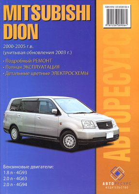 Информационно-справочное иллюстрированное издание руководство по ремонту Mitsubishi Dion, а также руководство по эксплуатации и техническому обслуживанию Mitsubishi Dion, устройство Mitsubishi Dion 2000-2005 годов выпуска (включая рестайлинг 2003). Эта модель оборудуется бензиновыми силовыми агрегатами 4G93 рабочим объемом 1,8 л. (165 л.с.) и 4G63, 4G94 рабочим объемом 2,0 л. (135 и 145 л.с.). Ремонт Мицубиси Дион. Инструкция по эксплуатации. Схемы электрооборудования.