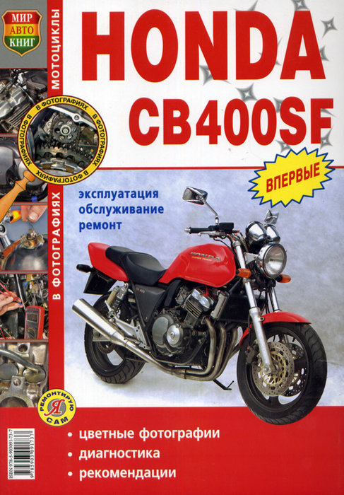 Справочное пособие Руководство по ремонту Honda CB400SF, а также руководство по эксплуатации и техническому обслуживанию, устройство мотоциклов Honda CB 400SF. Цветное иллюстрированное практическое пособие.В издании изложено описание работ по техническому обслуживанию и ремонту мотоциклов Хонда CB400SF с использованием готовых запасных частей в условиях гаражной мастерской. Все рабочие операции в мануале сопровождаются фотографиями и подробными комменатариями, что позволит реально сэкономить время, силы и средства, а также свести к минимуму риск возможности повреждения техники.Настоящая книга предназначена для мотоциклистов, занимающихся самостоятельным обслуживанием и ремонтом своей техники.Мягкий переплет. 208 стр.ISBN 978-5-903091-73-7Содержание книги:Инструкция по техобслуживанию Honda CB400SF: (глава для ознакомления)Электросхемы Honda CB400SF: (скачать бесплатно)