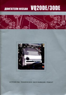 Справочное пособие по ремонту двигателей Nissan VQ20DE, Nissan VQ30DE, пособие по техническому обслуживанию, устройство бензиновых двигателей Nissan VQ20DE, VQ30DE.