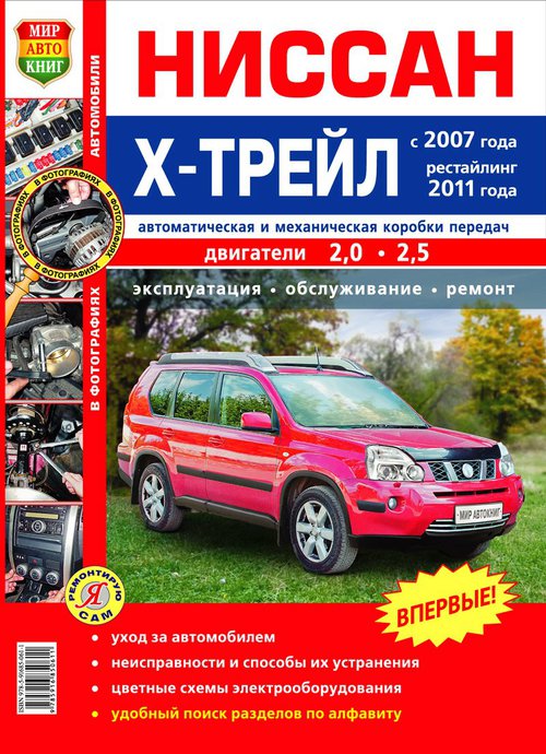 Практическое справочно-информационное иллюстрированное в цвете пособие руководство по ремонту Nissan X Trail, а также подробная книга по эксплуатации и техническому обслуживанию Nissan X-Trail, устройство Nissan X-Trail, которые впервые сошли с конвейера в 2007 году. Также рассмотрена рестайлинговая модель 2011 года. Эти машины оборудуются бензиновыми двигателями рабочим объемом 2,0 и 2,5 л. и оснащены как АКПП так и МКПП.