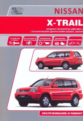 Справочное издание пособие по ремонту Ниссан Х-Трейл, устройство, руководство по техническому обслуживанию и эксплуатации Nissan X-Trail с 2000 г. выпуска, оборудованных бензиновыми двигателями QR20DE, QR25DE рабочим объемом 2,0, 2,2, 2,5 л. Ремонт Ниссан Икстрейл. Инструкция по эксплуатации и техобслуживанию. Диагностика неисправностей. Электрические схемы.