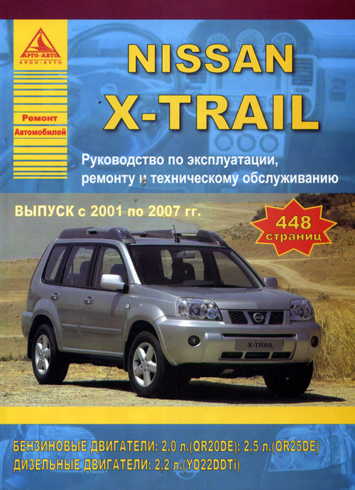 Справочно-информационное издание руководство по ремонту Ниссан Икстрейл, эксплуатации и техническому обслуживанию автомобилей Nissan X-Trail с 2001 по 2007 гг. выпуска, оборудованных бензиновыми двигателями рабочим объемом 2,0 л. (QR20DE), 2,5 л. (QR25DE), а также дизельными двигателями рабочим объемом 2,2 л. (YD22DDTi). Ремонт узлов и агрегатов. Инструкция по эксплуатации. Электрические схемы Ниссан Икстрейл.
