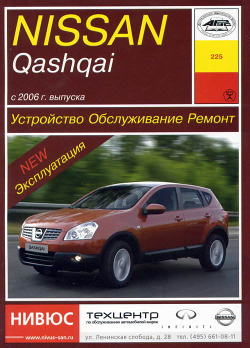 Справочно-информационное пособие Инструкция по ремонту Nissan Qashqai, а также руководство по техническому обслуживанию и эксплуатации, устройство автомобилей Nissan Qashqai с 2006 г. выпуска, оборудованных бензиновыми двигателями рабочим объемом 1,6, 2,0 л., а также дизельными двигателями рабочим объемом 1,5, 2,0 л., оборудованные 5- или 6-ступенчатой РКПП, 6-ступенчатой АТ, либо вариаторной трансмиссией.