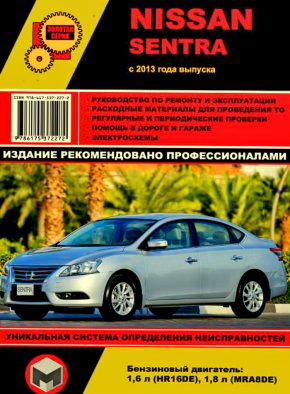 Руководство по ремонту Nissan Sentra, книга по эксплуатации и техническому обслуживанию Ниссан Сентра с 2013 г. выпуска, оборудованных бензиновыми двигателями HR16DE и MRA8DE рабочим объемом 1,6 и 1,8 литра.
