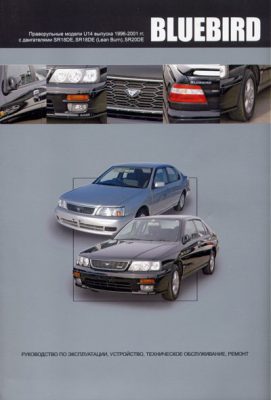 Справочно-информационное издание Руководство по ремонту Nissan Bluebird, а также руководство по обслуживанию и эксплуатации, устройство автомобилей Nissan Bluebird (праворульные модели) 1996-2001 гг. выпуска, оборудованных бензиновыми двигателями SR18DE, SR18DE (Lean Burn), SR20DE рабочим объемом 1,8, 2,0 л., с различными системами подготовки смеси (DE с распределённым впрыском, DE (Lean Burn) двигатели, работающие на сверхобедненной смеси). Ремонт Ниссан Блюберд. Инструкция по эксплуатации. ТО. Схемы электрооборудования.