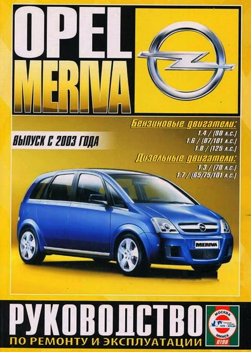 Информационное иллюстрированное пособие книга по ремонту Опель Мерива, устройство Опель Мерива, инструкция по техническому обслуживанию и эксплуатации Опель Мерива с 2003 г. выпуска, оборудованных бензиновыми силовыми агрегатами рабочим объемом 1,4 (90 л.с.), 1,6 (87, 101 л.с.), 1,8 л. (125 л.с.), а также дизельными моторами, рабочим объем которых составляет 1,3 (70 л.с.) и 1,7 л. (65, 75, 101 л.с.). Ремонт узлов и агрегатов. Эксплуатация, техобслуживание, электрические схемы.