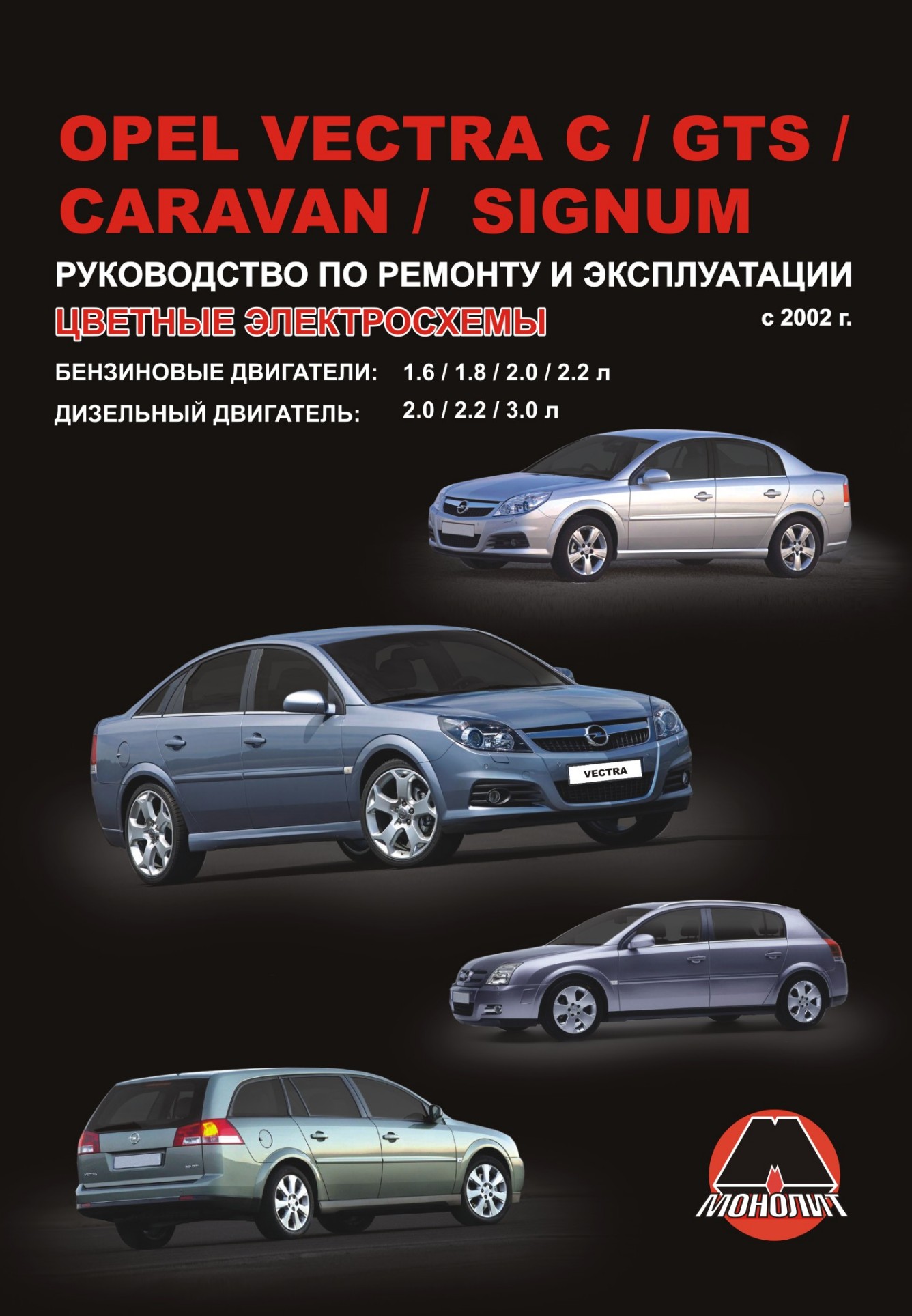 Иллюстрированное руководство по ремонту Opel Vectra C / Opel GTS / Opel Caravan / Opel Signum, впервые появившиеся на мировых дорогах в 2002 году. Включено руководство по эксплуатации и техническому обслуживанию, рассмотрено устройство моделей. Автомобили укомплектованы бензиновыми двигателями рабочим объемом 1,6, 1,8, 2,0, 2,2 л., а также дизелями 2,0, 2,2, 3,0 л. Ремонт Опель Вектра. Эксплуатация, ТО, электрические схемы.