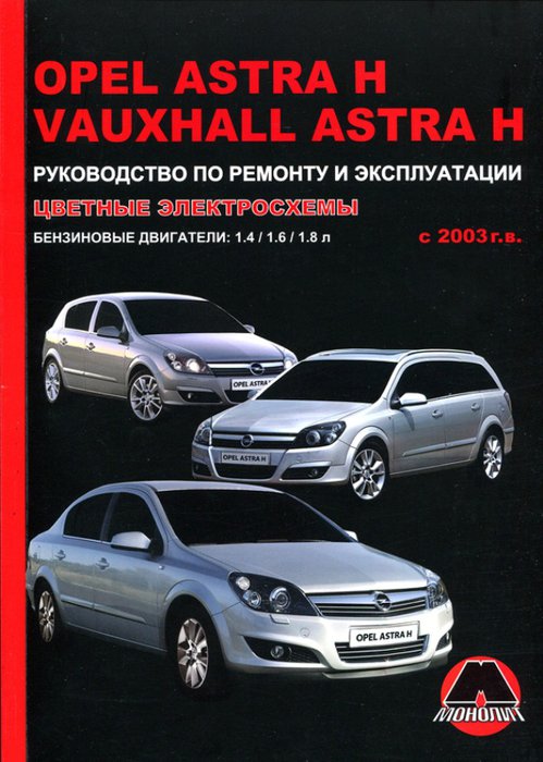 Иллюстрированное справочно-информационное издание инструкция по ремонту Opel Astra H / Vauxhall Astra H, а также руководство по техническому обслуживанию и эксплуатации Opel Astra H / Vauxhall Astra H, устройство Opel Astra H / Vauxhall Astra H с 2003 года выпуска, оборудованных бензиновыми моторами рабочим объемом 1,4 (90 л.с), 1,6 (105 л.с) и 1,8 л. (125 л.с). Тип установленных двигателей: Z14XEP / Z14XEL / Z16XEP / Z18XE / Z18XER.