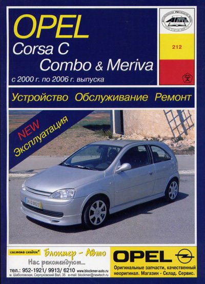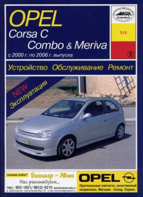 Издание иллюстрированное справочное Руководство по ремонту Опель Мерива, Corsa C, Combo, а также руководство по эксплуатации и техническому обслуживанию, устройство автомобилей Opel Corsa C, Combo, Meriva 2000-2006 гг. выпуска, оборудованных бензиновыми двигателями рабочим объемом 1,0, 1,2, 1,4, 1,6, 1,8 л. и дизельными двигателями рабочим объемом 1,3, 1,8 л с 5-ступенчатой РКПП, 4-ступенчатой АТ или 5-ступенчатой роботизированной коробкой передач Easytronic.