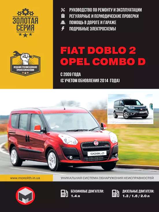 Руководство (мануал) по ремонту и эксплуатации Опель Комбо Д и Фиат Добло 2. В электронной книге рассмотрены автомобили с 2009 по 2017 года выпуска с бензиновыми и дизельными двигателями.
