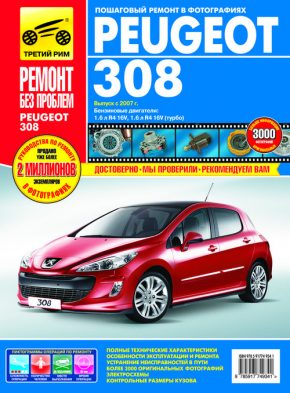 Настоящая техническая литература окажет всегда своевременную и часто по-настоящему неоценимую техподдержку всем владельцам автомобилей Пежо 308, а также она в какие-то рабочие моменты будет безусловно полезна многочисленным специалистам из СТО, сотрудникам из самых разных ремонтных автомастерских и техсервисов.