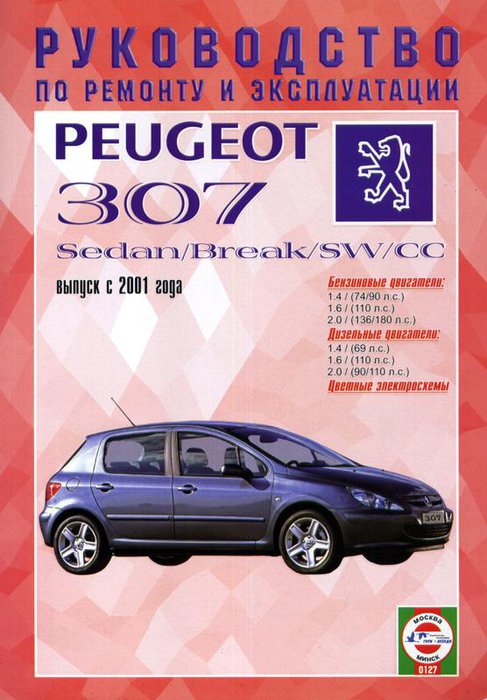 Руководство по ремонту и эксплуатации Peugeot 307 Sedan / Break / SW / CC с 2001 г. выпуска, оборудованных бензиновыми двигателями рабочим объемом 1,4, 1,6, 2,0 л., а также дизельными двигателями рабочим объемом 1,4, 1,6, 2,0 л.