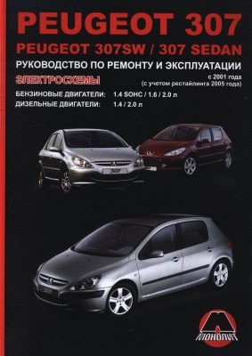 Пособие по ремонту Peugeot 307 / 307 SW / 307 Sedan, а также инструкция по эксплуатации и техническому обслуживанию автомобилей Пежо 307 с 2001 года выпуска (учитывая обновления 2005 года), оборудованных бензиновыми двигателями рабочим объемом 1,4 л. SOHC, 1,6 л., 2,0 л., а также дизельными двигателями рабочим объемом 1,4 л., 2,0 л.