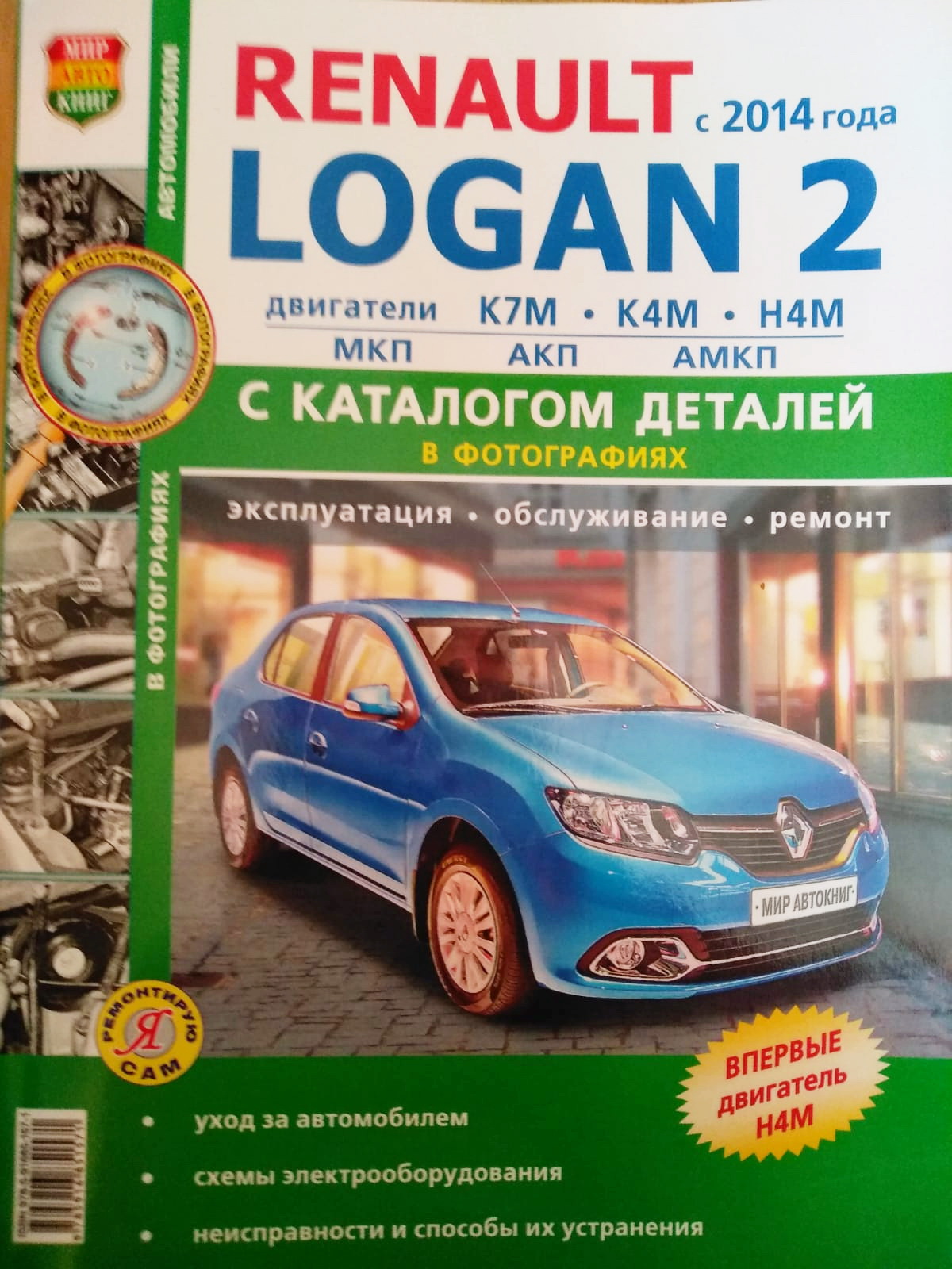 Пособие по ремонту, каталог запчастей Рено Логан-2, инструкция по обслуживанию и эксплуатации Renault Logan-2 с 2014 г. выпуска, оборудованных бензиновыми двигателями объемом 1,6 литра.