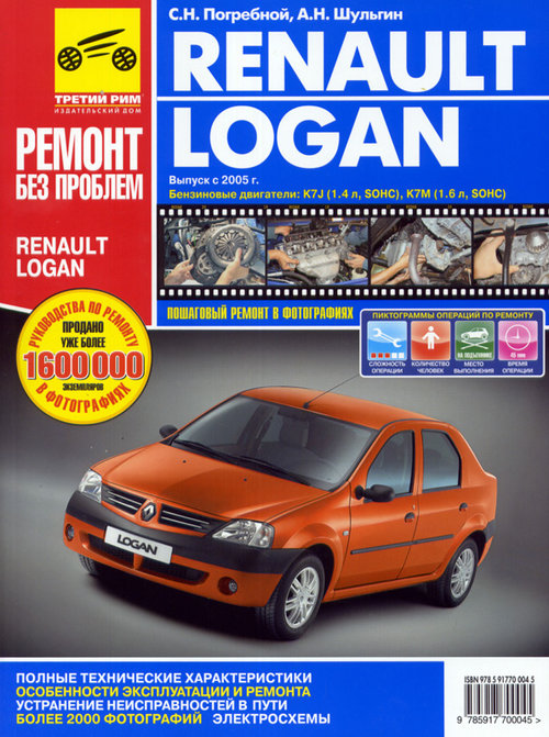 Выполненное в цветных иллюстрациях справочное пособие Руководство по ремонту Renault Logan, а также руководство по эксплуатации и техническому обслуживанию, устройство Renault Logan, оборудованных бензиновыми двигателями K7J рабочим объемом 1,4 л. и К7М рабочим объемом 1,6 л. Книга содержит более 2000 цветных фотографий, подробно отображающих процесс пошагового ремонта автомобиля.