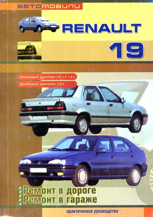 Руководство по ремонту и техобслуживанию автомобилей Renault 19 с 1989 г. выпуска, оборудованных бензиновыми двигателями рабочим объемом, 1,4, 1,7, 1,8 л., а также дизельными двигателями рабочим объемом 1,9 л. Ремонт в дороге. Ремонт в гараже. Практическое руководство.