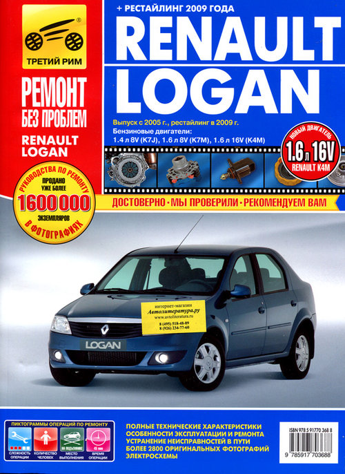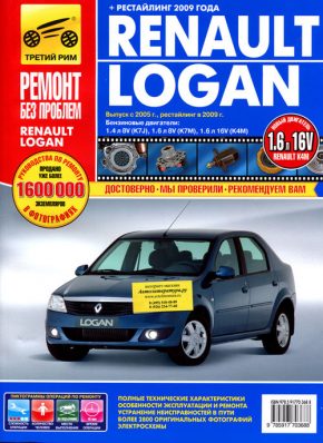 Информационно-справочное цветное издание Руководство по ремонту Рено Логан, а также руководство по эксплуатации и техническому обслуживанию, устройство Renault Logan c 2005 г. выпуска, а также рестайлинговые модели с 2009 года выпуска, оборудованных бензиновыми двигателями рабочим объемом 1,4, 1,5 и 1,6 л. Пошаговый ремонт Рено Логан. Цветные фотографии. Инструкция по эксплуатации. Электросхемы