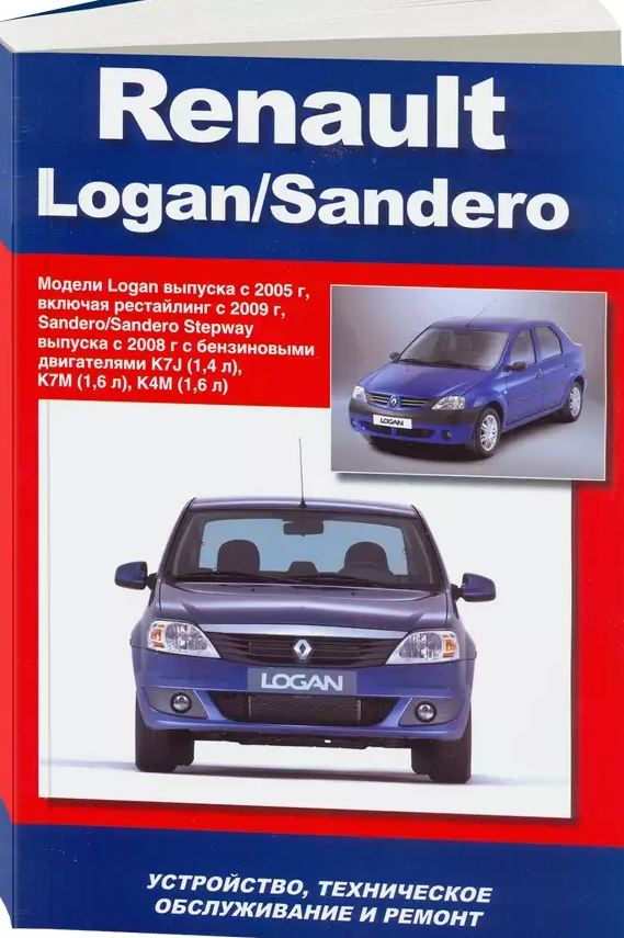 Инструкция по ремонту Renault Logan / Sandero / Sandero Stepway, устройство, пособие по эксплуатации и техническому обслуживанию Renault Logan с 2005 и рестайлинговых с 2009 года выпуска и Renault Sandero / Sandero Stepway с 2008 года выпуска, оборудованных бензиновыми двигателями K7J рабочим объемом 1,4 л., К7М и K4M объемом 1,6 л. Книга содержит множество качественных иллюстраций, подробно отображающих процесс пошагового ремонта автомобиля. Ремонт Рено Логан.