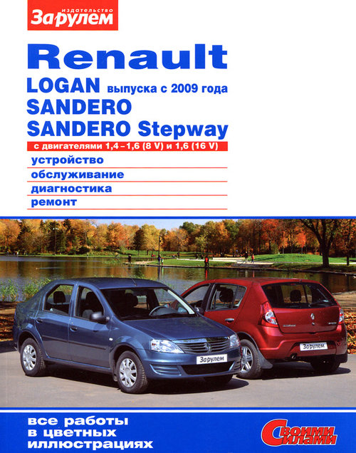 Справочно-информационное издание руководство по ремонту Renault Logan / Renault Sandero / Renault Sandero Stepway, техническое обслуживание Renault Logan / Renault Sandero / Renault Sandero Stepway, эксплуатация и устройство Renault Logan / Renault Sandero / Renault Sandero Stepway c 2009 г. выпуска, оборудованных бензиновыми двигателями рабочим объемом 1,4 (8v) и 1,6 л. (8v и 16v) Цветное иллюстрированное издание.