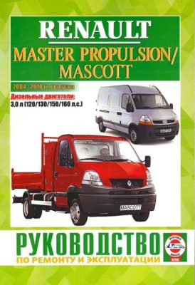 Профессиональная книга по ремонту Рено Мастер Пропулсион / Рено Маскот, а также устройство, инструкция по эксплуатации и техническому обслуживанию Renault Master Propulsion / Mascott, выпускавшихся в период с 2004 по 2010 года, оборудованных дизельными двигателями рабочим объемом 3,0 л и мощностью в 120 / 130 / 150 / 160 л.с.