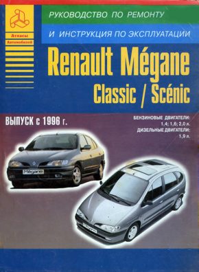Руководство по ремонту, техническому обслуживанию и эксплуатации автомобилей и эксплуатации автомобилей Renault Megane Сlassic / Scenic с 1996 г. выпуска, оборудованных бензиновыми двигателями рабочим объемом 1,4, 1,6, 2,0 л. и дизельными двигателями рабочим объемом 1,9 л.