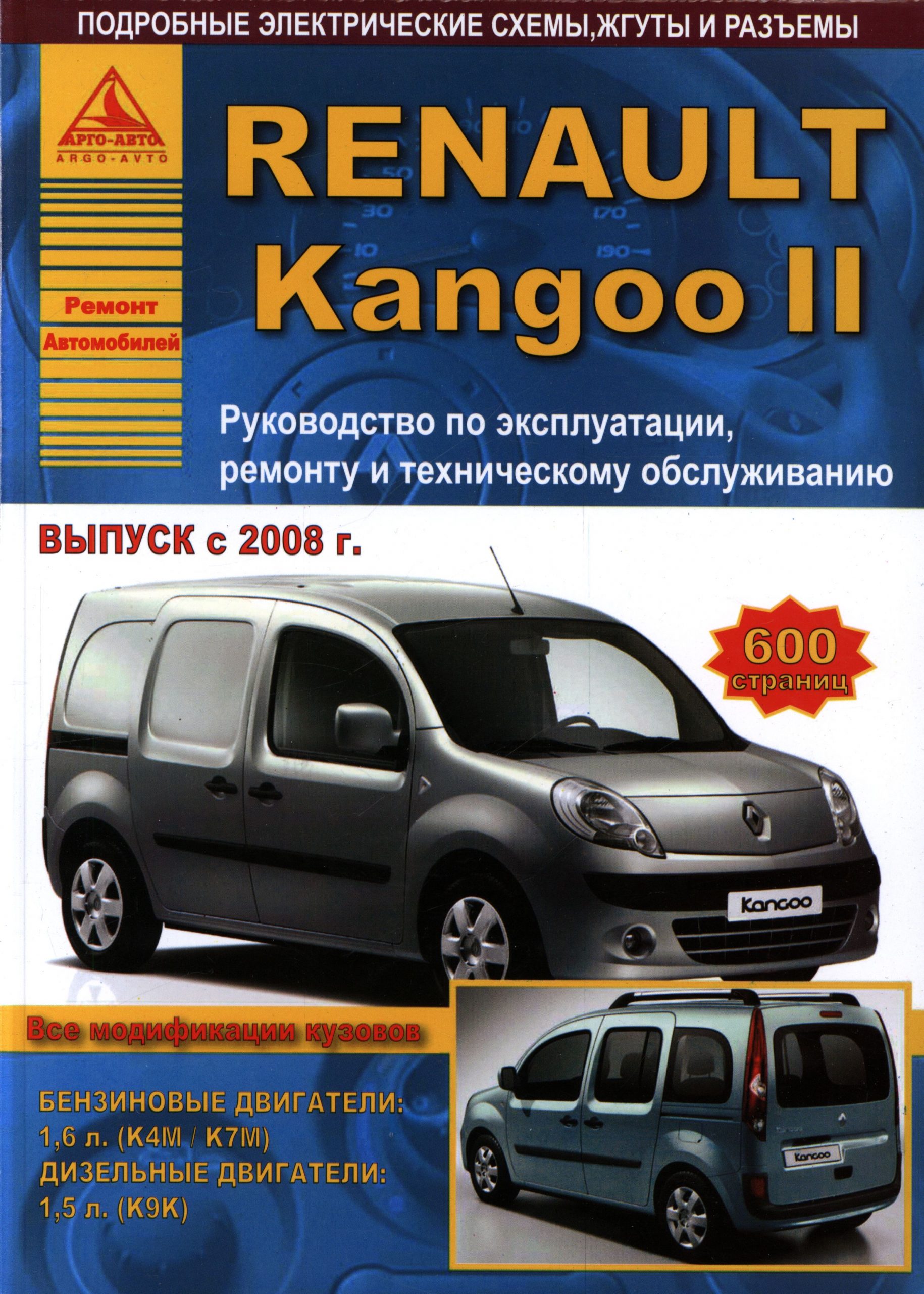 Книга по ремонту Renault Kangoo II со всеми типами кузова, а также инструкция по техническому обслуживанию и эксплуатации автомобилей Рено Кангу 2 с 2008 года выпуска. В пособии рассматриваются модели, оборудованные бензиновыми двигателями рабочим объемом 1,6 л. (К4М / К7М) и дизельными двигателями рабочим объемом 1,5 л. (К9К). Ремонт узлов и агрегатов .Рено Кангу 2. Инструкция по эксплуатации. Электрические схемы.