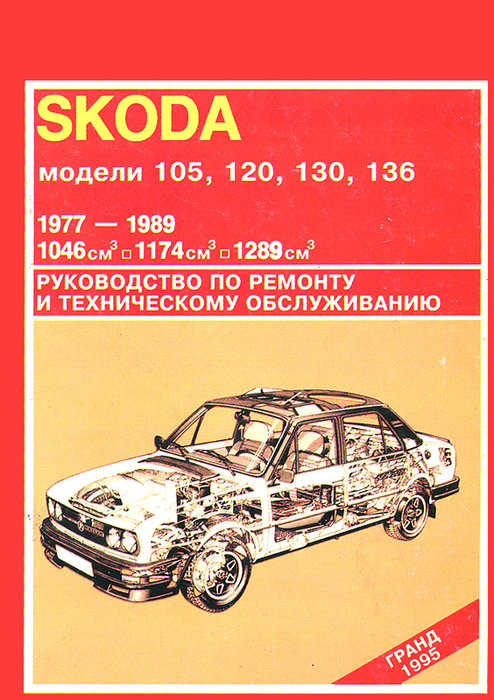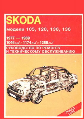 Книга по ремонту Шкода 105 / 120 / 130 / 136, а также инструкция по техническому обслуживанию и устройство Skoda 105, 120, 130, 136, поступивших в продажу в период с 1977 по 1989 года, оборудованных двигателями рабочим объемом 1,1, 1,2, 1,3 л.