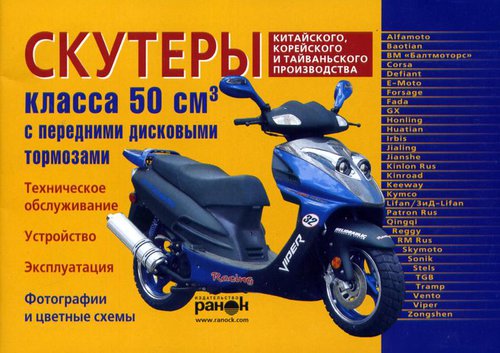В настоящем пособии рассматриваются скутеры китайского, корейского и тайваньского производства, оборудованные карбюраторными четырехтактными двигателями воздушного охлаждения объемом 50 см3 и оснащенные передними дисковыми тормозами следующих торговых марок: