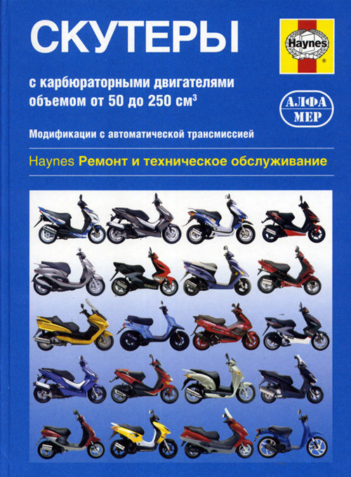 Руководство по ремонту и техническому обслуживанию скутеров с карбюраторными двигателями объемом от 50 до 250 см3. Модификации с автоматической трансмиссией.В пособии представлены:Aprilla Leonardo 125, Rally 50, Sonic FT и GP, SR50 (выпущенные с 1994 по 1999 год),Gilera Ice 50, Runner 50, Runner FX125 и FXR180, Runner VX125 и VXR180/200, SKP 50 (Stalker),Honda FES 125 Pantheon, FES 250 Foresight, NES 125@125, SCV 100 Lead, SES 125 Dylan, SFX 50, SGX 50 Sky, SH 50, SH 125, SZX 50 (X8R-S и X8R-X),Malaguti F 12 Phantom 50, F 12 Spectrum 50, F 15 Firefox 50, Madison 125 и 150,MBK Doodo 125, Mach G 50, Nitro 50 и 100, Ovetto 50 и 100, Rocket, Skyliner 125, Stunt 50, Thunder 125,Peugeot Elyseo 50/100/125, Elystar 125 и 150 Advantage, Looxor 50/100/125/150, Ludix 50, Speedfight 50 и 100, Speedfight 2 50 и 100, Trekker 50 и 100, Vivacity 50 и 100, Zenith,Piaggio B 125 (Beverly), Fly 50 и 125, Hexagon 125, Super Hexagon 125 и 180, Liberty 50 и 125, NRG 50 MC2, NRG 50 MC3, NRG Power, Skipper 125, Skipper ST 125, Typhoon 50/80/125, X 8 125, X 9 125 (включая модификацию Evolution), Zip 50, Zip 50 SP, Zip 100 4T, Zip 125,Suzuki AN 125, AP 50, AY 50 Katana, AY 50 W Katana R, UH 125 Burgman,Sym DD 50 City Trek, Jet 50 и 100, Shark 50, Super Fancy и City Hopper,Vespa ET2 50, ET4 50, ET4 125, GT 125 и 200, LX2 50, LX4 50, LX4 125,Yamaha CS 50 JogR, CS 50Z JogRR, CW/BW 50, EW 50 Slider, NXC 125 Cygnus, XN 125 Teo’s, XQ 125 Maxster, YN 50 и 100 Neo’s, YP 125 Majesty, YP 250 Majesty, YQ 50 и 100 Aerox.В настоящем пособии рассмотрено техническое обслуживание – полное пошаговое руководство. Двигатель, трансмиссия, топливо и зажигание – регулировки и ремонт. Тормозная система, рама и подвеска и кузовное оборудование – контроль и ремонт. Электрооборудование – поиск и устранение неисправностей, представлены электросхемы основных узлов. Приложение – включает словарь технических терминов.Советы Haynes облегчат Вашу работу.Твердый переплет. 368 стр.ISBN 978-5-93392-144-8