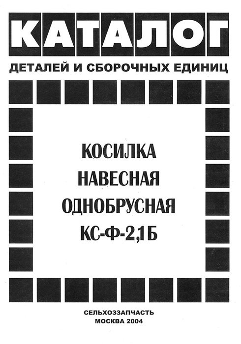 Настоящий справочный каталог содержит иллюстрации и спецификации сборочных единиц и деталей косилки навесной однобрусной КС-Ф-2.1Б.