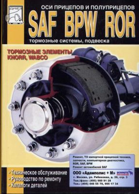 Руководство по ремонту и техническому обслуживанию, а также каталог деталей осей прицепов и полуприцепов производства фирм SAF, BPW, ROR.
