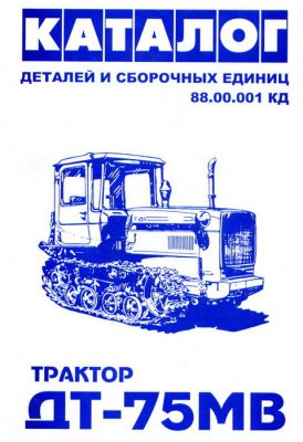 Каталог деталей, запасных частей и сборочных единиц трактора ДТ-75МВ содержит краткую техническую характеристику и развернутые спецификации всех узлов и деталей трактора. В спецификации указаны обозначения узлов и деталей, их наименование, количество на одну сборочную единицу, материал и вес. Каждая группа сопровождается иллюстрациями.