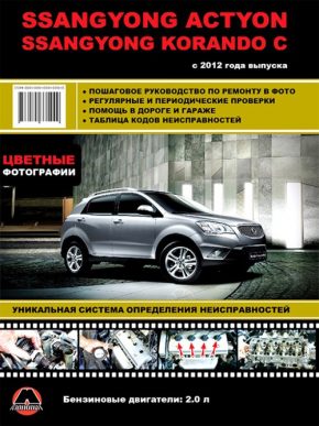 Цветная в фотографиях иллюстрированная книга по ремонту SsangYong Korando С, инструкция по эксплуатации и техническому обслуживанию, устройство Санг Йонг Корандо С с 2012 года выпуска. Руководство содержит полную информацию об автомобилях, оборудованных бензиновыми двигателями G20DF рабочим объемом 2,0 л.и мощностью 149 л.с. Ремонт Ссангйонг Корандо. Цветные фото. Эксплуатация, ТО, неисправности, электрические схемы.