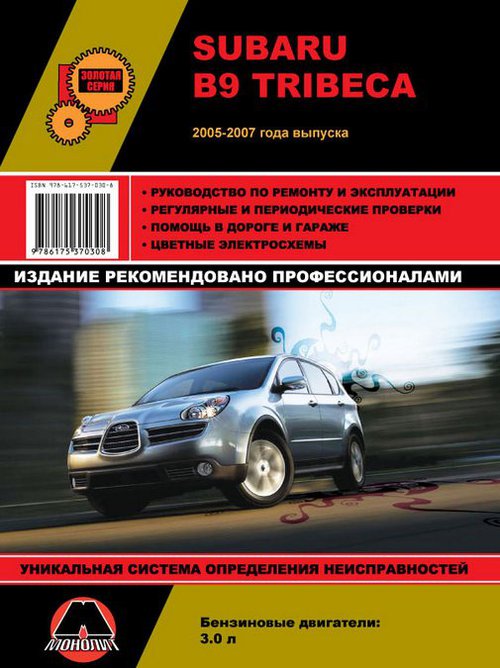 Как и многие другие технические пособия, которые подготовлены замечательными профессионалами своего дела, еще одна книга по ремонту Золотой серии от авторитетного издательства авторемонтной литературы Монолит в подробностях и с качественными иллюстрациями расскажет своему будущему хозяину о том, какими вариантами возможно качественно и в то же время по-максимуму скоро осуществить всевозможные работы по диагностике неполадок Субару Б9 Трибека (автомобилисту в данной ситуации поможет уникальная, разработанная механиками из Монолита, система обнаружения повреждений и неисправностей) и всестороннему грамотному ремонту узлов, различных компонентов и систем кроссовера, его многочисленных механизмов и агрегатов. Помимо этого данная инструкция поможет потребителю провести вынужденную замену деталей и комплектующих Subaru B9 Tribeca. Материалы книги окажут содействие своему владельцу не только на эстакаде или в гаражной мастерской. Возможно и неприятное стечение обстоятельств, когда пособие превратится для пользователя в натуральный спасательный круг, станет для него совершенно незаменимым в пути, особенно в моменты, когда при форс-мажоре рядом элементарно не будет никого, кто сумел бы выручить автомобилиста конкретным действием, обнадежить его взвешенной рекомендацией или подсказкой мастера, способными если уж не отремонтировать технику, то как минимум помочь водителю добраться до ближайшего автосервиса.