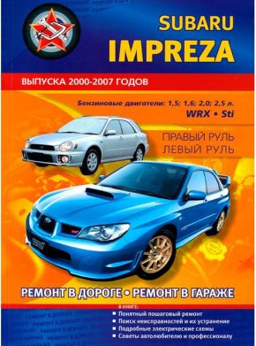 Иллюстрированное справочно-информационное издание Пособие по ремонту Субару Импреза, а также устройство, пособие по эксплуатации и техническому обслуживанию Subaru Impreza, как леворульных, так и с правым рулем. Выпуск этой модели Субару производился с 2000 по 2007 годы. Оборудовались эти машины двигателями работающими на бензине рабочим объемом 1,5, 1,6, 2,0, 2,5 л.