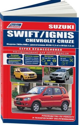 Все ремонтные советы и указания, важные подсказки по техобслуживанию и эксплуатации, включенные в мануал, смогут помочь владельцам Судзуки Свифт, Судзуки Игнис или Чевролет Круз в операциях по подготовке к процедуре техосмотра, и безусловно являются важным сборником ценной, насыщенной и нередко абсолютно незаменимой информации в случаях когда процедура ремонта происходит в гаражных условиях, а при обстоятельствах ремонта в автосервисах послужат пользователю источником реально очень важной информационно-функциональной составляющей, которая послужит не только автовладельцам (и опытным, и только-только успевшим сесть за руль), но и профи из сферы ремонта автотехники, которые займутся починкой Вашего техсредства.