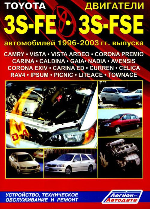 Руководство по ремонту бензиновых двигателей Toyota 3S-FE (2,0 л) с распределенным впрыском топлива и 3S-FSE (2,0 л) с непосредственным впрыском топлива, устанавливавшихся на автомобили Toyota в 1996-2003 годах.