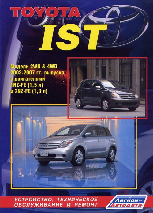 Справочное издание Руководство по ремонту Toyota Ist, а также руководство по эксплуатации и техническому обслуживанию, устройство автомобилей Toyota Ist 2002-2007 гг. выпуска, оборудованных бензиновыми двигателями 2NZ-FE рабочим объемом 1,3 и 1NZ-FE рабочим объемом 1,5 л. Ремонт Тойота Ист. ТО, эксплуатация, устройство. Электрические схемы.