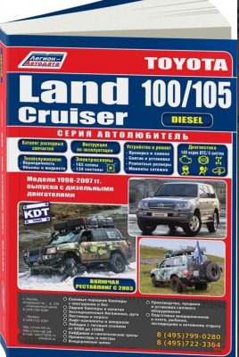 Руководство по ремонту, эксплуатации и техническому обслуживанию автомобилей, книга по ремонту Toyota Land Cruiser 100 / 105 1998-2007 гг. выпуска, оборудованных дизельными двигателями 1HZ (4,2 л.), 1HD-T (4,2 л. с турбонаддувом) и 1HD-FTE (4,2 л. с турбонаддувом и электронным управлением). Инструкция по эксплуатации Тойота Лендкрузер 100. Электрические схемы. Каталог расходных запчастей. Рекомендации по ТО.
