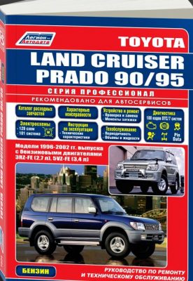 Руководство по ремонту, эксплуатации и техническому обслуживанию автомобилей Toyota Land Cruiser Prado 1996-2002 гг. выпуска с левосторонним и правосторонним рулевым управлением, оборудованных бензиновыми двигателями 3RZ-FE (2,7 л.), 5VZ-FE (3,4 л.) с электронным управлением. Ремонт Тойота Лендкрузер 90. Каталог расходных запчастей. Инструкция по эксплуатации. Описание неисправностей. Диагностика. Устройство. Электрические схемы.Тойота Ланд Крузер 90.