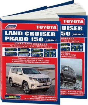 Книга по ремонту Тойота Ленд Крузер 150 с 2015 г. выпуска (учитывая рестайлинг 2017), оборудованных бензиновыми двигателями 1GR-FE, 2TR-FE рабочим объемом 2,7 и 4,0 литра, а также дизельными двигателями 1GD-FTV рабочим объемом 2,8 литра.