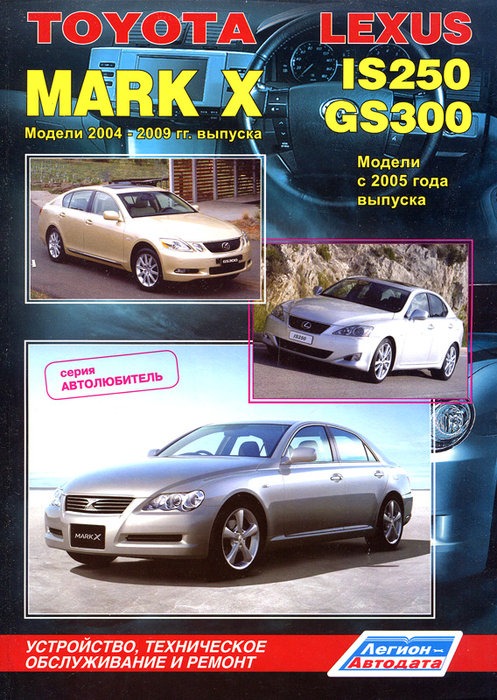 Справочно-информационное иллюстрированное издание руководство по ремонту Toyota Mark X, Lexus IS250 / Lexus GS300, устройство Toyota Mark X, Lexus IS250 / Lexus GS300, руководство по эксплуатации и техническому обслуживанию Toyota Mark X 2004-2009 годов выпуска, Lexus IS250 / Lexus GS300 с 2005 года выпуска. Эти автомобили оборудуются бензиновыми силовыми агрегатами 4GR-FSE и 3GR-FSE рабочим объемом 2,5 и 3,0 л. соответственно. Ремонт Тойота Марк Х. Инструкция по эксплуатации. Рекомендации по ТО. Электросхемы.
