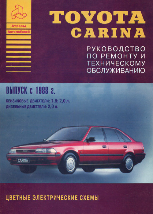 Руководство по ремонту и техническому обслуживанию автомобилей Toyota Carina с 1988 г. выпуска, оборудованных бензиновыми двигателями рабочим объемом 1,3, 2,0 л., а также дизельными двигателями рабочим объемом 2,0 л.